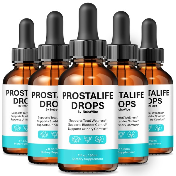 NutraVibe (5 Pack) ProstaLife Drops – Daily Prosta Life Liquid Support for Men’s Vitality, Urinary Comfort, and Prostate Health | Clean, Easy-to-Take Formula for Everyday Use (150 Servings)