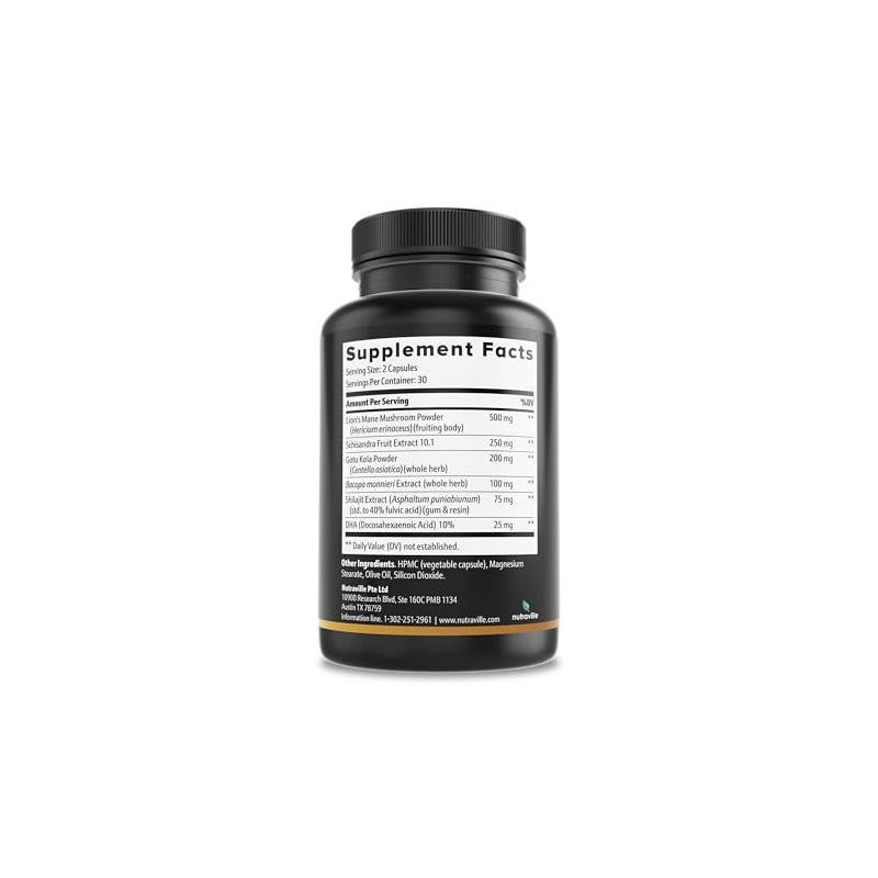 Nutraville CogniSurge Nootropics Brain Support Supplement for Memory and Focus - Nature-Powered Lion's Mane Supplement Capsules with Shilajit - No Caffeine or Stimulants - 2 Pack
