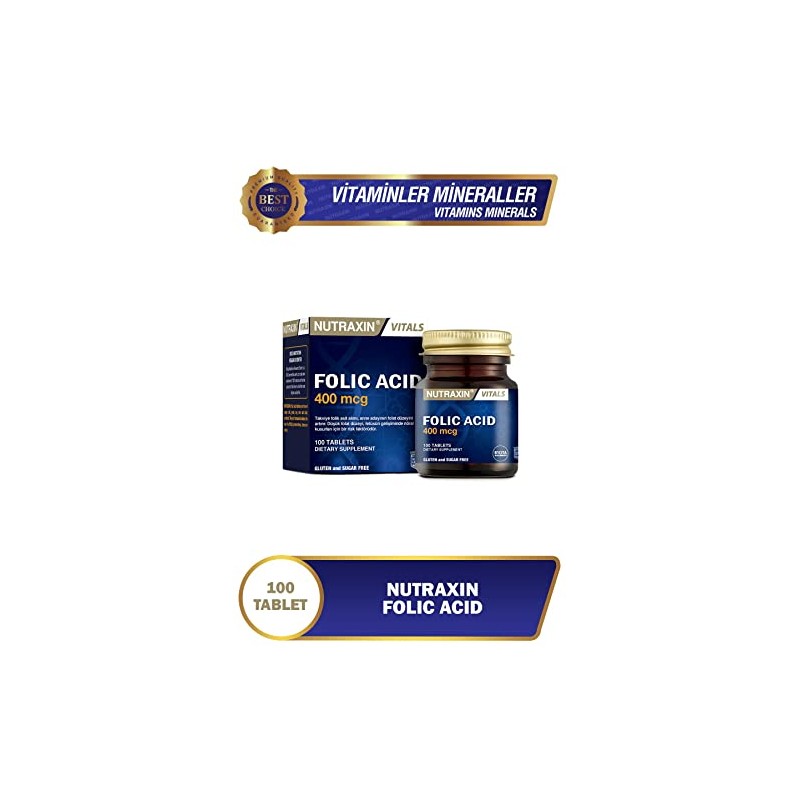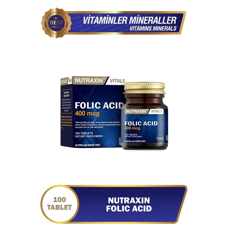 Nutraxin Vitals Folic Acid 400 mcg 100 Tablet Takviye Edici Gıda