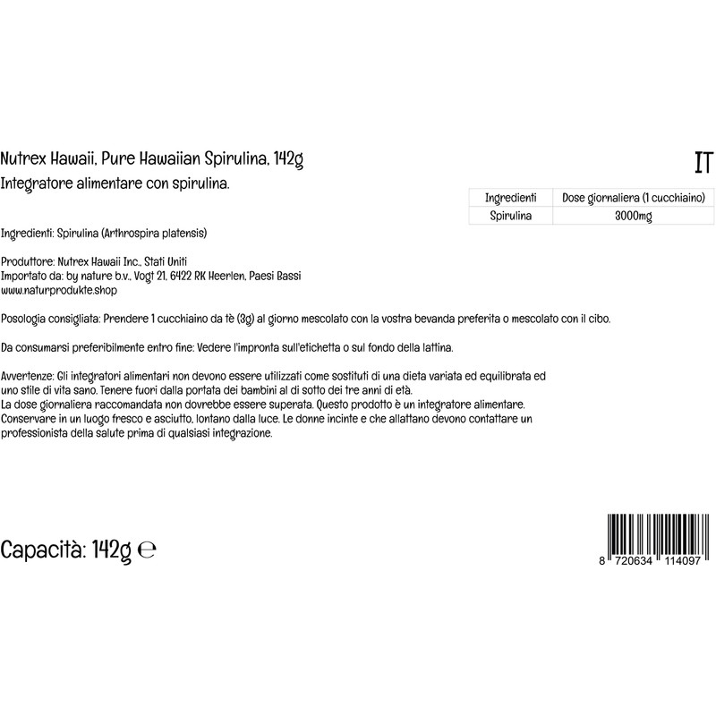- HIGHLY DOSED: One dose, three grams, of Pure Hawaiian Spirulina powder from Nutrex Hawaii contains 3000mg of spirulina that you can feed your body every day