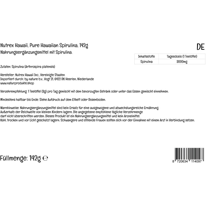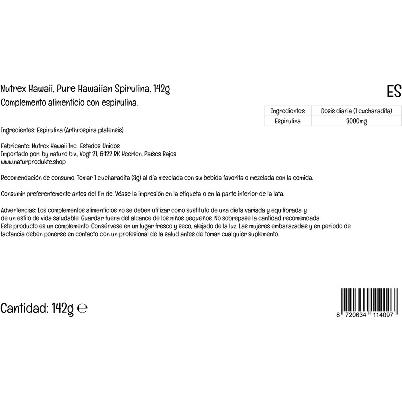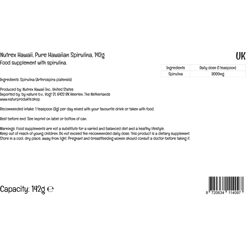 Nutrex Hawaii, Pure Hawaiian Spirulina, 142g Vegan Powder, Lab Tested, Gluten-Free, Soya-Free, Vegetarian, Non-GMO