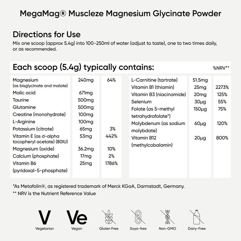 - 240mg of easily absorbed magnesium forms - bisglycinate and malate - for efficacy and gentle digestion. Contains amino acids the building blocks of protein for muscle repair and recovery - L-carnitine, creatine, glutamine and taurine.
