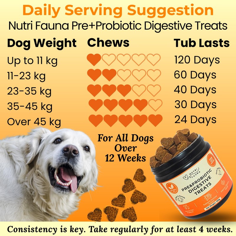 Nutri Fauna Pre&Probiotic Digestive Treats For Dogs - Gut Health, Sensitive Tums, Anal Glands, Scooting, Loose Stools All Breeds Dogs -120 Chews (Probiotic & Calming)