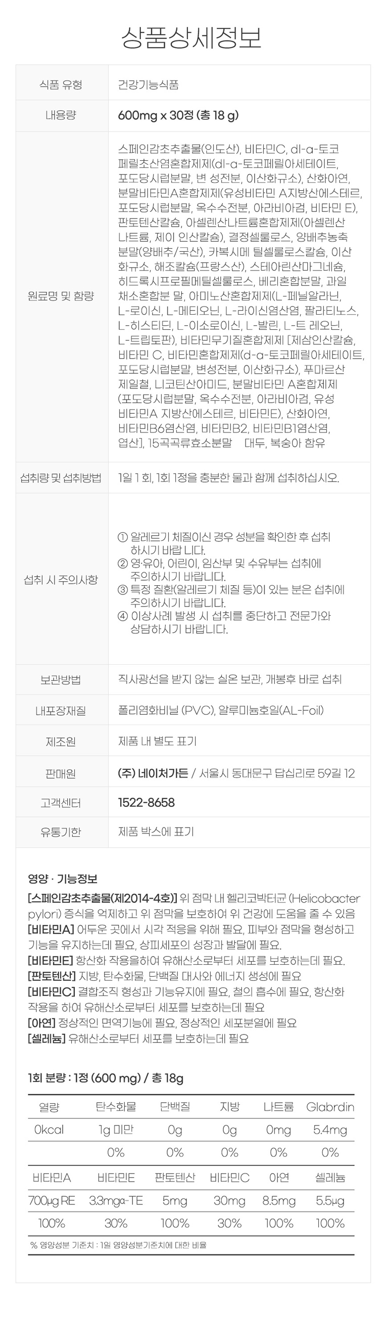 [Nutri Garden] Stomach health Helicobacter care 600mg*30 tablets 5 boxes / Gastric mucosa protection