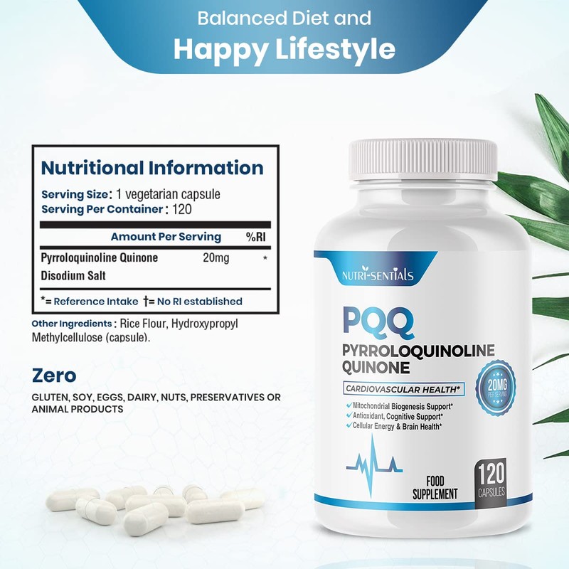Nutri-Sentials PQQ Max 20mg, 120 Capsules C Pyrroloquinoline Quinone - Promotes Mitochondrial Biogenesis, Energy Optimize | Plant Extract - Powerful & 100% Natural Supplement