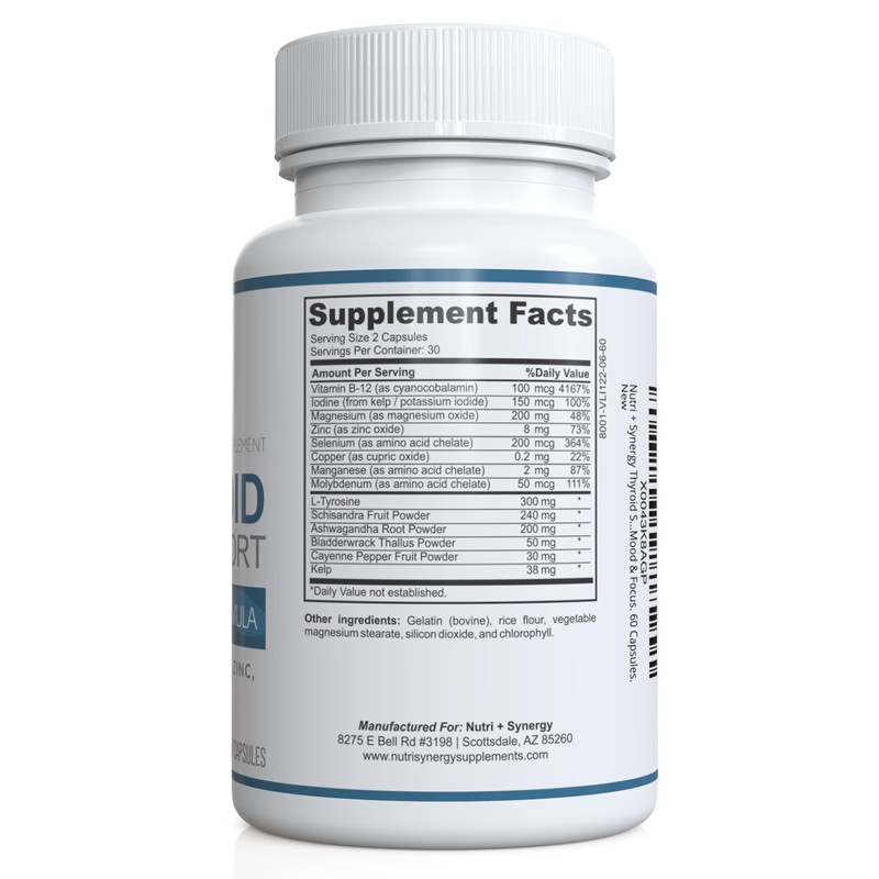 - Nutri + Synergy Thyroid Support helps your mental clarity and focus, and supports memory function.