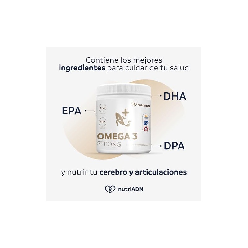 - 3 con EPA, DHA, DPA y Aceite de Pescado para un apoyo integral a tu bienestar diario, con 1000mg por porción. BIENESTAR COGNITIVO: Diseñado para apoyar funciones clave del cerebro y mejorar tu enfoque gracias al Omega 3 DHA. APOYO ARTICULAR: Mantén la movilidad y un estilo de vida activo con los beneficios de esta fórmula avanzada de Omega