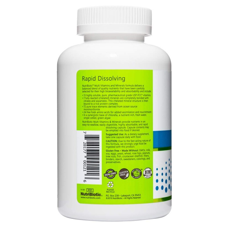 NutriBiotic – Multi Vitamins & Minerals, 180 Ct Capsules (Formerly Hypoallergenic Multiple) | 72 Pure Trace Elements in a Base of Chlorella | Pharmaceutical-Grade & Highly Absorbable | Gluten Free