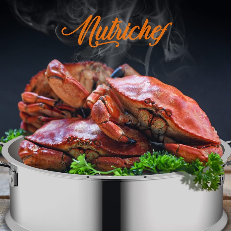 NutriChef 8-quart Steamer Insert with Lid - PFOA/PFOS Free Stainless Steel Stain-Resistant Steamer Insert Kitchen Cookware w/ Satin Interior, Polished Exterior, Cast Handles - Works w/ Model NCSSX45