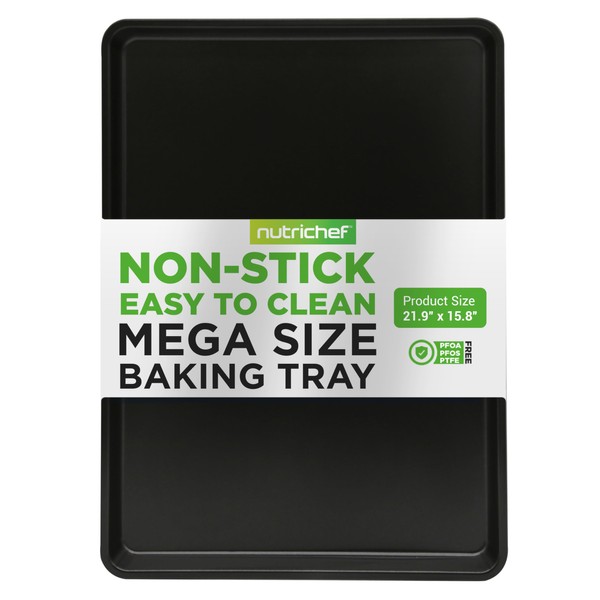 NutriChef Black Baking Pan, Extra Large Cookie Sheet for Baking and Roasting, Nonstick Bakeware for Roasting, Even Heat Distribution, Warp-Resistant, Easy to Clean, Oven Safe & Dishwasher Safe
