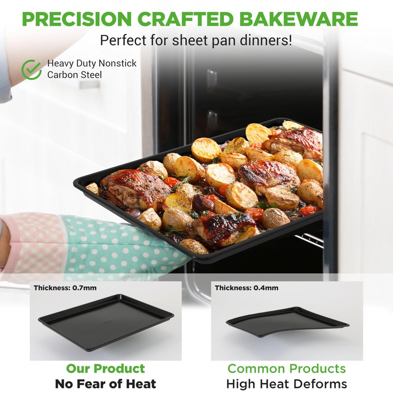 - DURABLE AND OVEN SAFE DESIGN – Made from heavy-duty carbon steel, this baking pan for oven delivers even heat distribution for perfectly baked goods every time. With high heat resistance, it’s ideal for baking, roasting, and more.