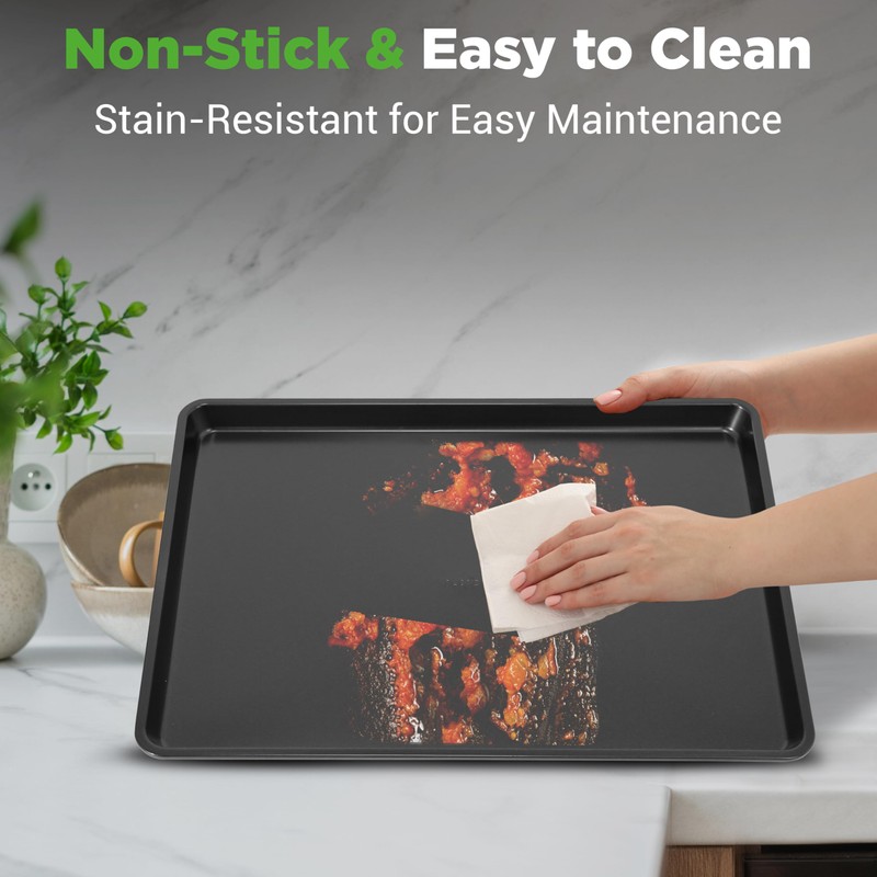 - MEGA SIZED BAKING PAN – Designed for large batches, this nonstick baking pan offers ample space for cookies, sheet cakes, or roasted vegetables. Perfect for everyday meals or party-sized creations, bringing versatility to every kitchen.