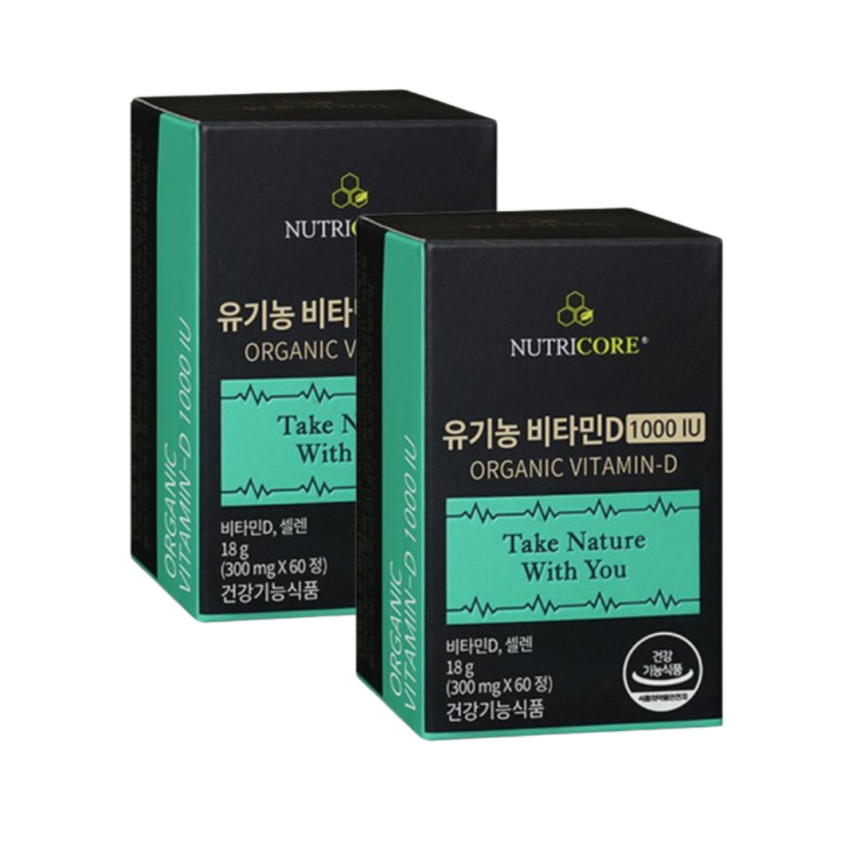 Nutricore Organic Vitamin D 1000 IU 300mg x 60 tablets x 2 boxes, 4 month supply / 뉴트리코어 유기농 비타민D 1000 IU 300mg x 60정 x 2박스 4개월분