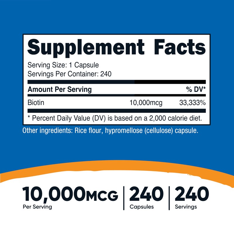 Nutricost Biotin (Vitamin B7) 10,000mcg (10mg) Vitamin Supplement, 240 Capsules - Vegetarian, Gluten Free, Quick Release, Non-GMO