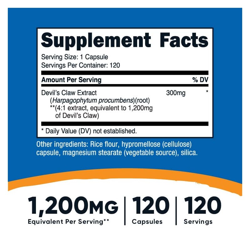 Nutricost Devils Claw 1200mg Equivalent, 120 Capsules - Veggie Caps, Non-GMO, Gluten Free, and Vegetarian Friendly