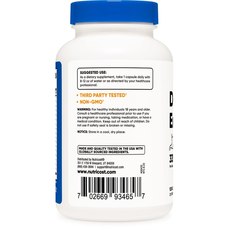 Nutricost's Complete, Full-Spectrum High Potency Digestive Enzyme Complex provides the body with enzymes designed to optimally aid in digestion in every capsule. This digestive enzyme supplement is non-gmo, gluten free, vegetarian friendly, and made in a GMP compliant facility.