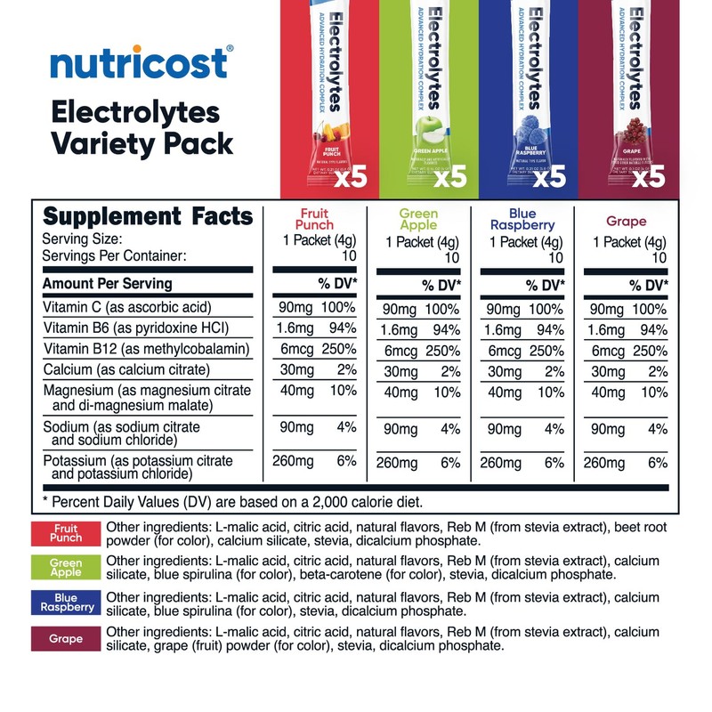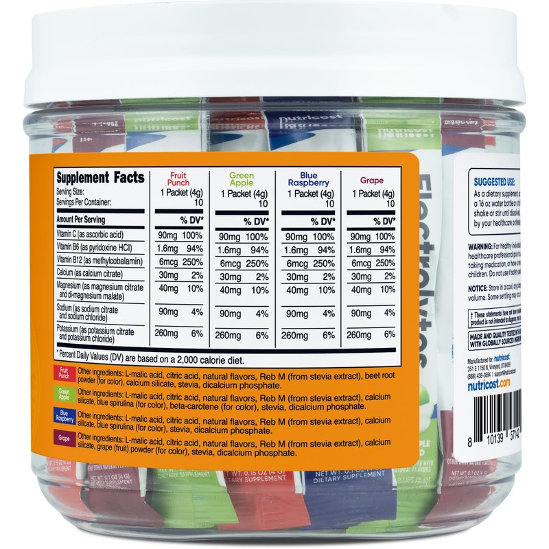 Nutricost Electrolytes Complex, Variety Pack Flavored, 40 Stickpacks - Advanced Hydration Complex