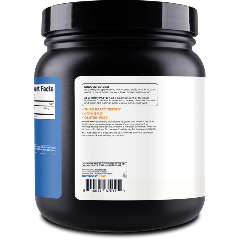 Nutricost Nutricost Activated Charcoal Powder 1lb - Food Grade Powder, Toothpaste, Facemask, Odor Control, Vegetarian, Gluten Free, Non-GMO