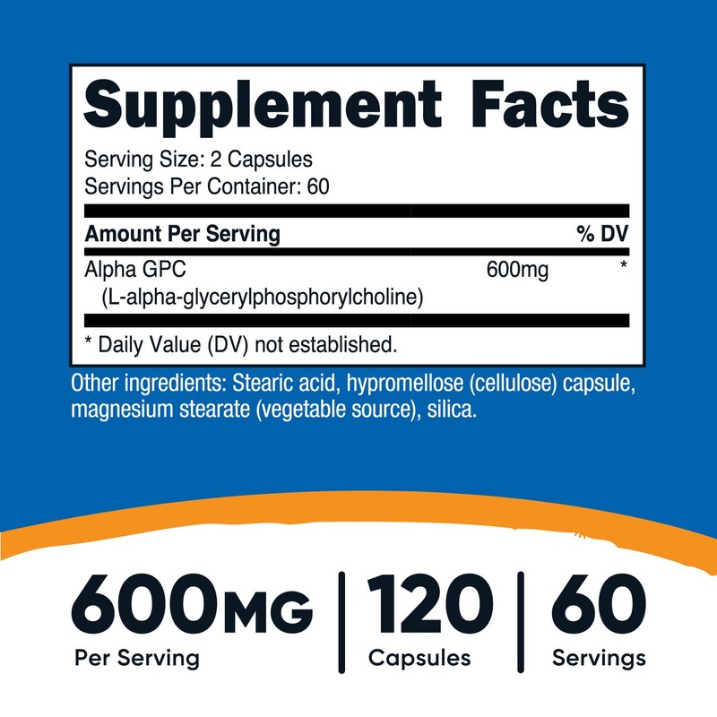 - 120 Vegetarian Capsules of Alpha GPC Per Bottle