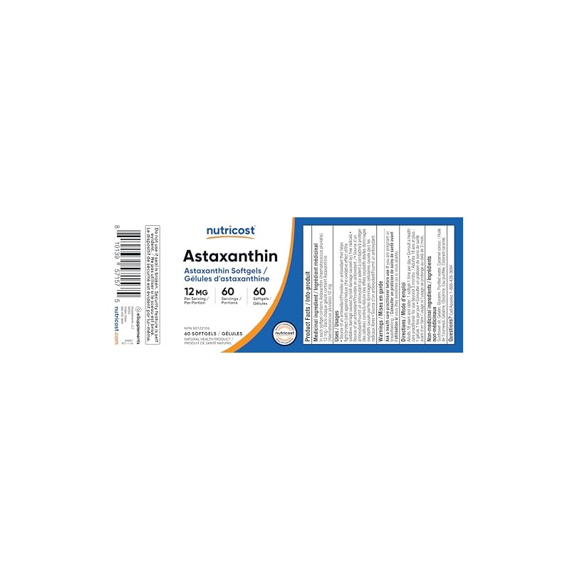 • Nutricost 12mg Astaxanthin contains 60 softgels in each bottle for a total of 60 servings.