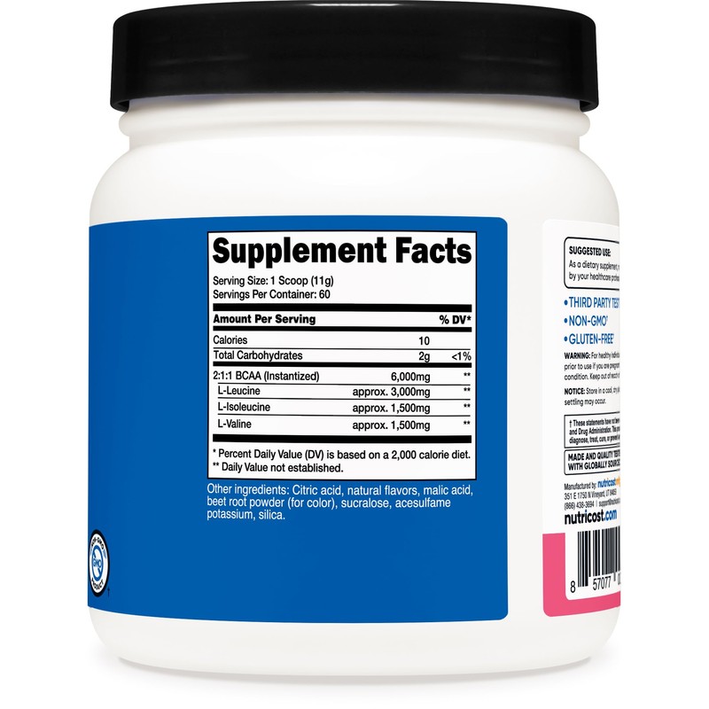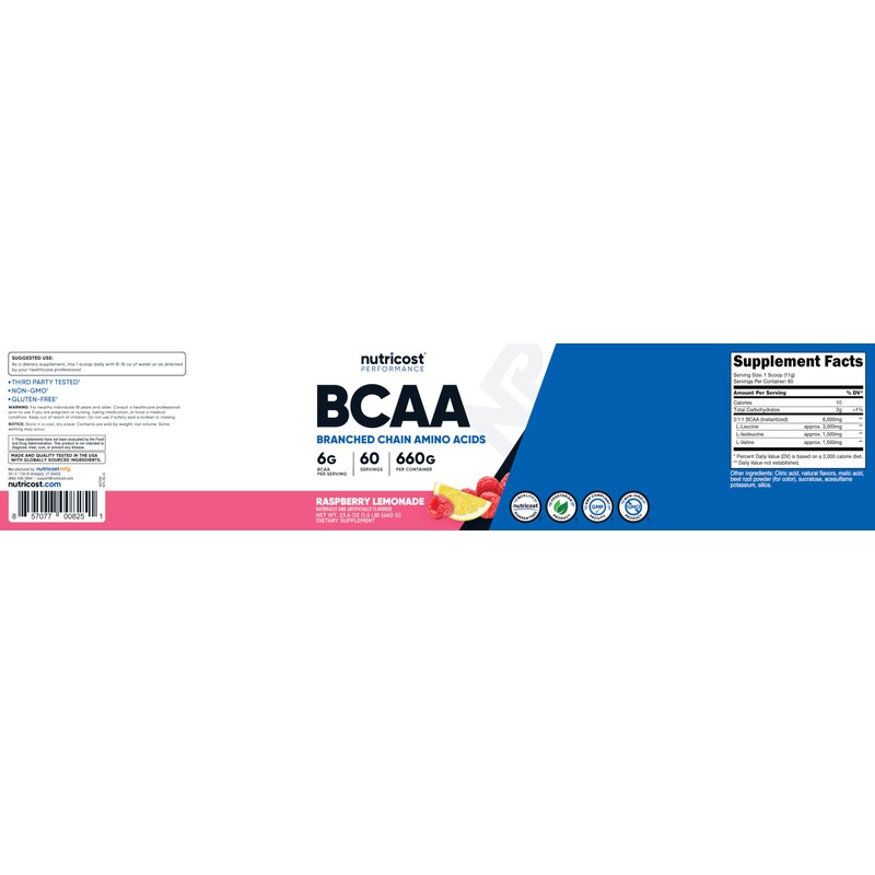 Nutricost Nutricost BCAA Powder (Raspberry Lemonade, 60 Servings) - Optimal 2:1:1 Ratio