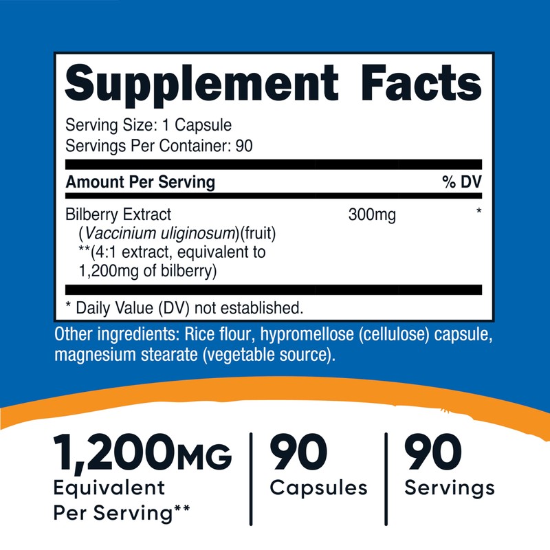 - 1200mg Equivalent (300mg Concentrated Bilberry) in Every Serving