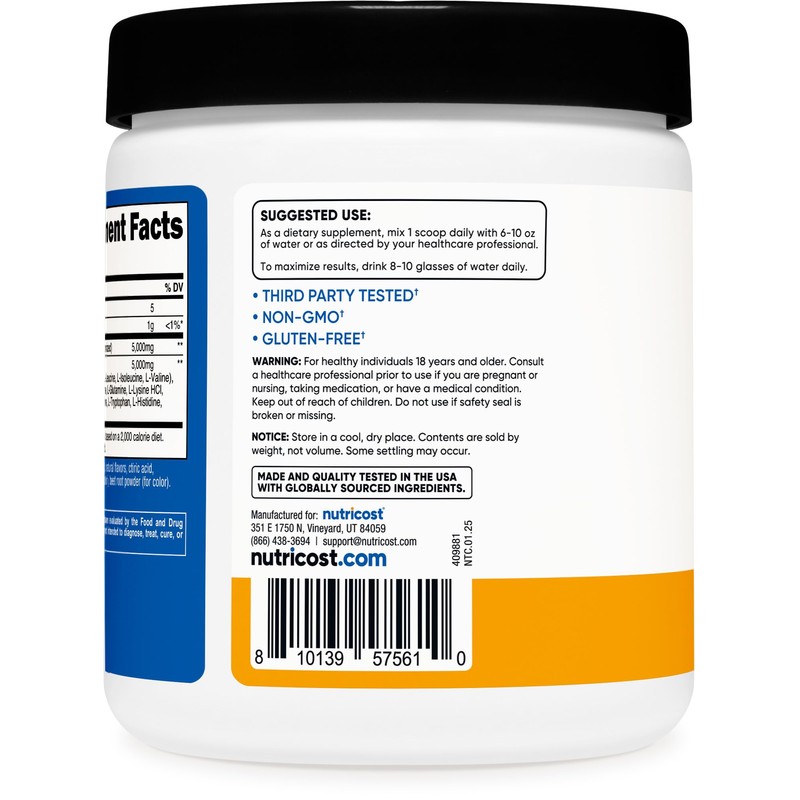 - Nutricost Creatine + Aminos is manufactured in a GMP-compliant facility and third-party tested for quality.