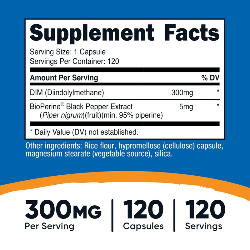- Extra Strength Serving of 300mg of DIM per Capsule. 1 Serving, Just 1 Capsule