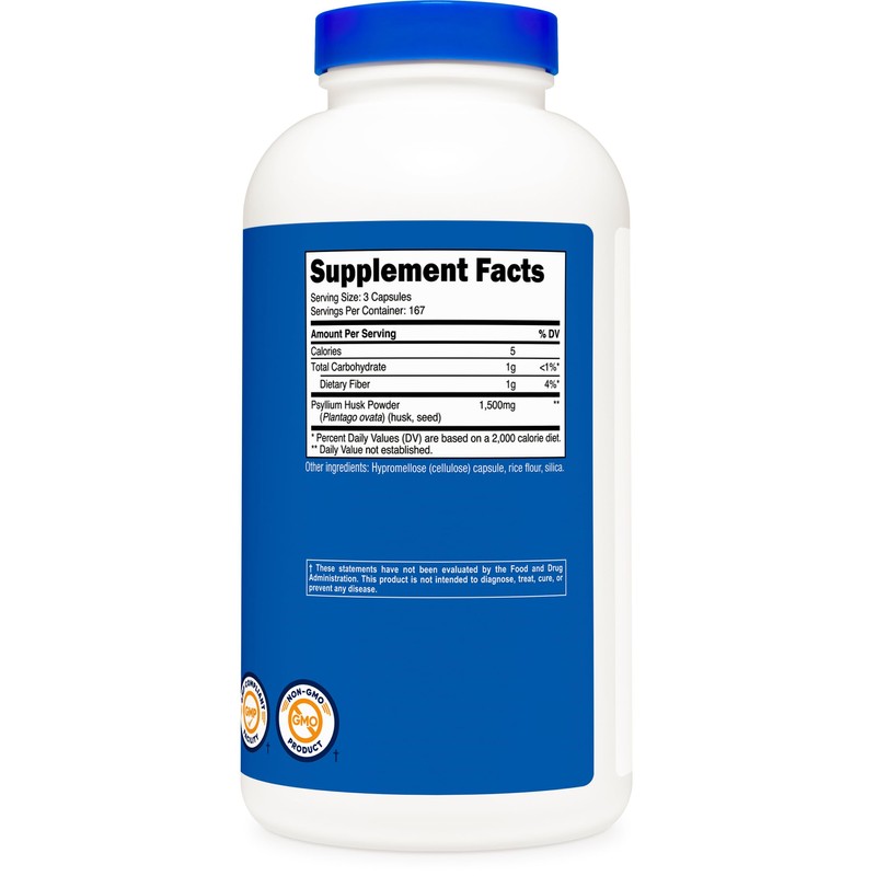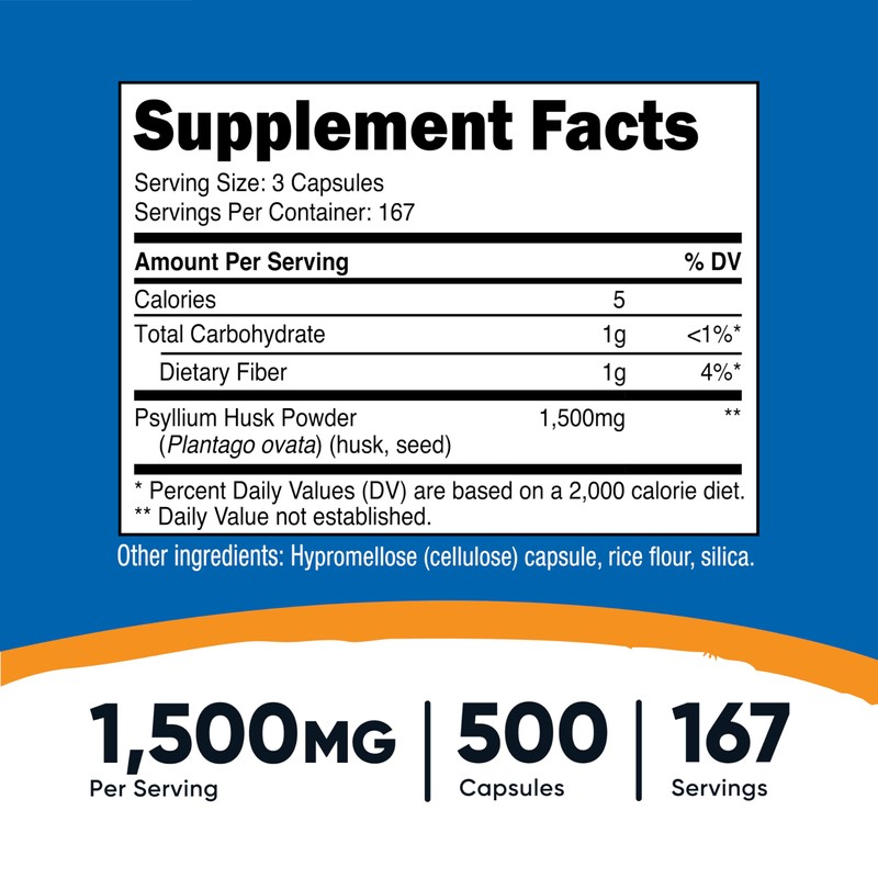 Nutricost Psyllium Husk 1500mg Per Serving, 500 Capsules - Non-GMO & Gluten Free