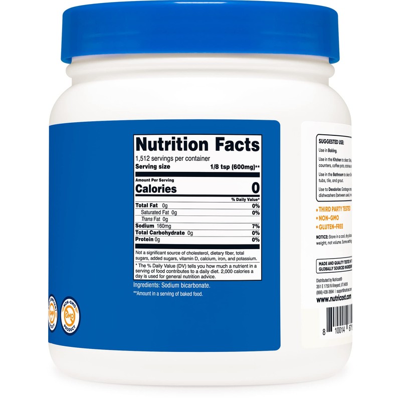 Nutricost Sodium Bicarbonate powder contains 1,512 servings. Each serving contains 600mg of Sodium Bicarbonate. It is Non-GMO and Gluten Free. Nutricost, located and headquartered in the USA, only uses the best ingredients to ensure maximum quality and to help you feel your best! By keeping our recipes simple and clean, you get the best experience possible with Nutricost. All Nutricost supplements are manufactured in a GMP-compliant and FDA-registered facility, provide high-quality ingredients, and offer a variety of options for your health support.