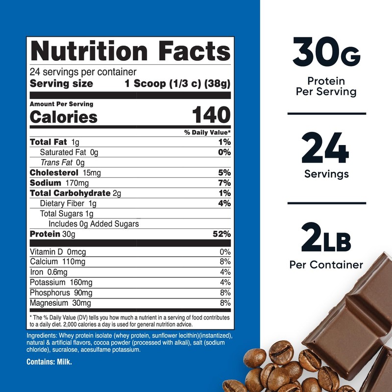 - 2 Pounds of Delicious Mocha Whey Protein Isolate