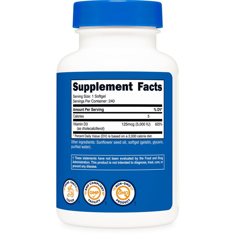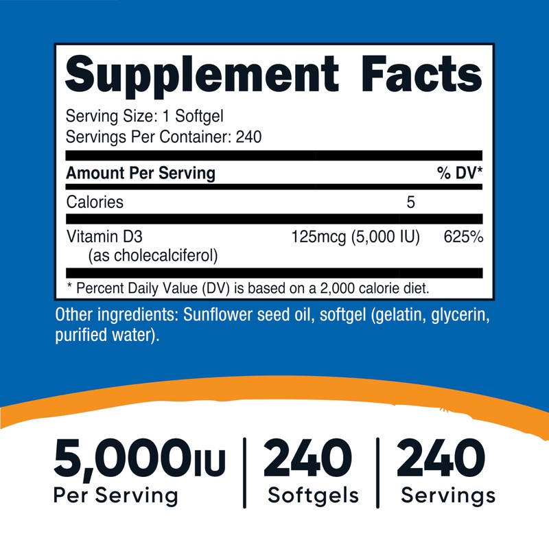 Nutricost Vitamin D3 5,000 IU (125mcg), 240 Softgels - Non-GMO and Gluten Free Vitamin D