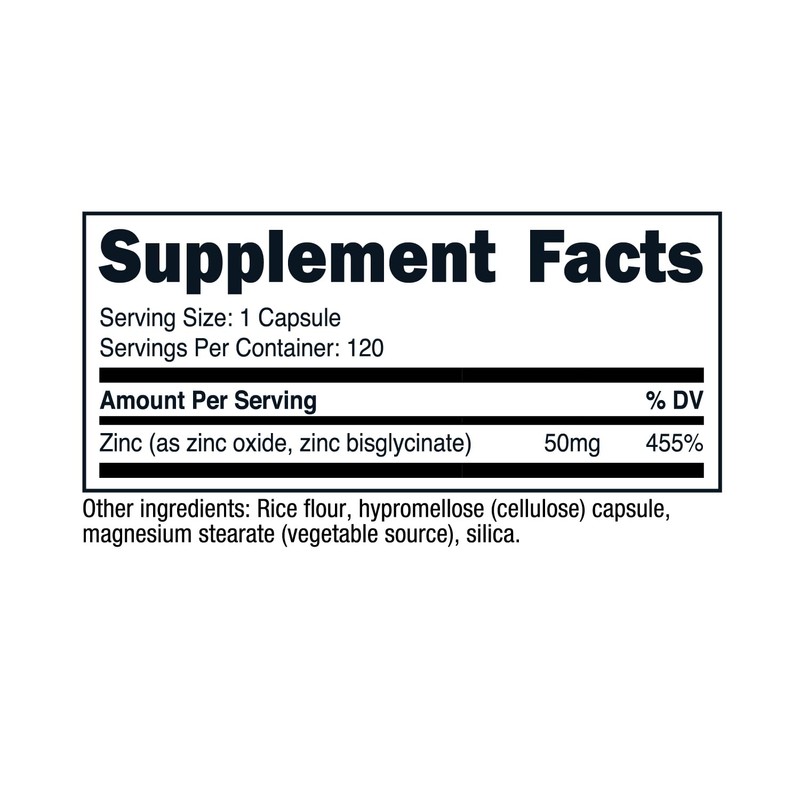 - Each vegan capsule delivers 50mg of zinc bisglycinate, optimal quality and bioavailability