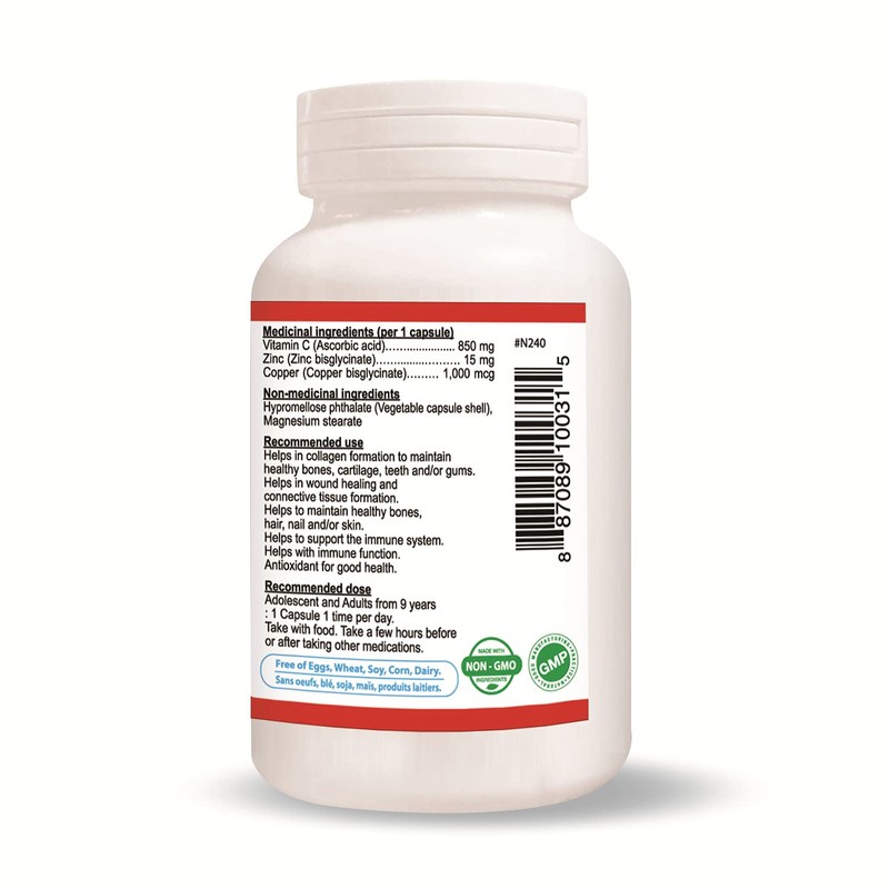 - Contains 850 mg Vitamin C, 15 mg Zinc Bis-Glycinate, and 1000 mcg Copper Bis-Glycinate per serving