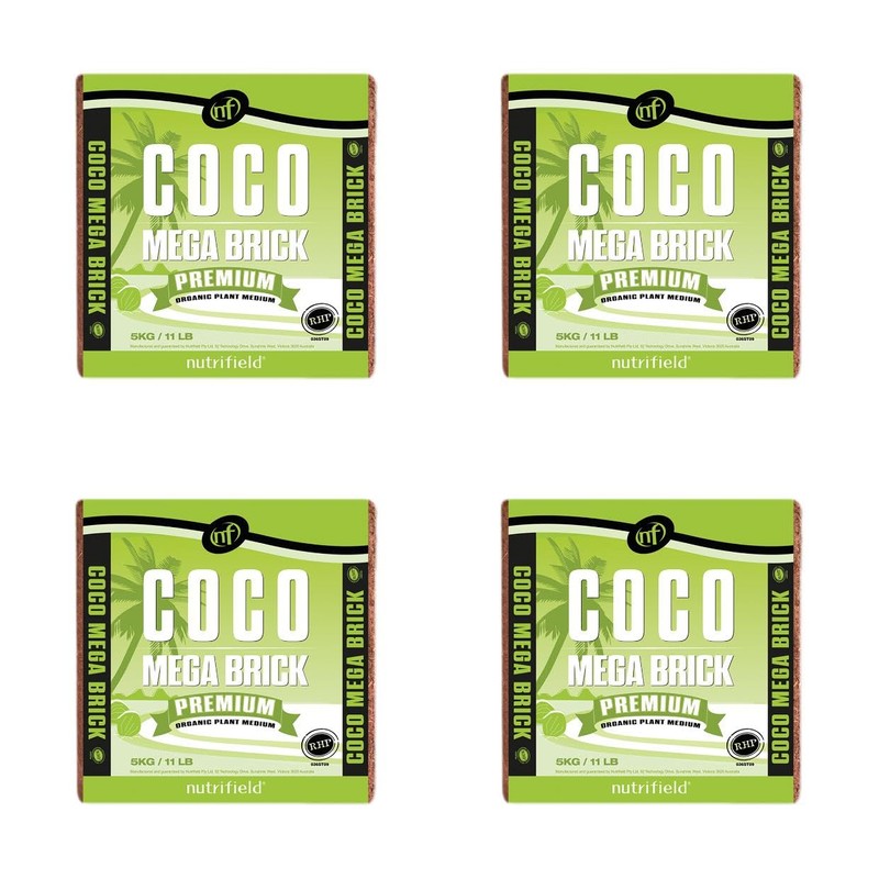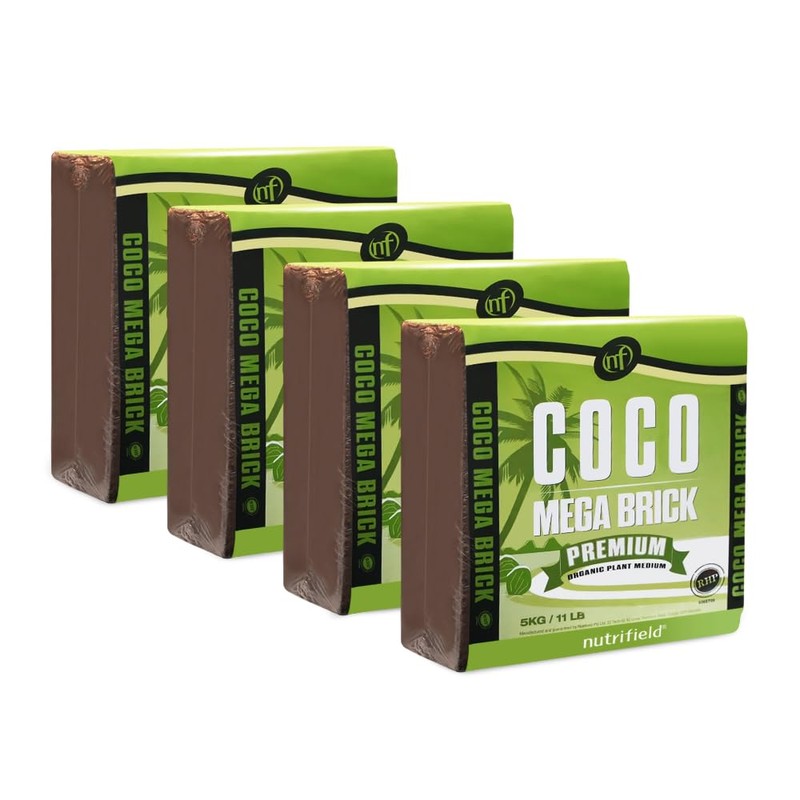 - Nutrifield Premium Coco Coir Mega Bricks Case of 4 Coconut Coir Blocks. Each Brick is 5 Kilo, 55 lIters when Hydrated, Premium Coco Coir for Garden, pH 6.0-6.4, Washed, Low EC