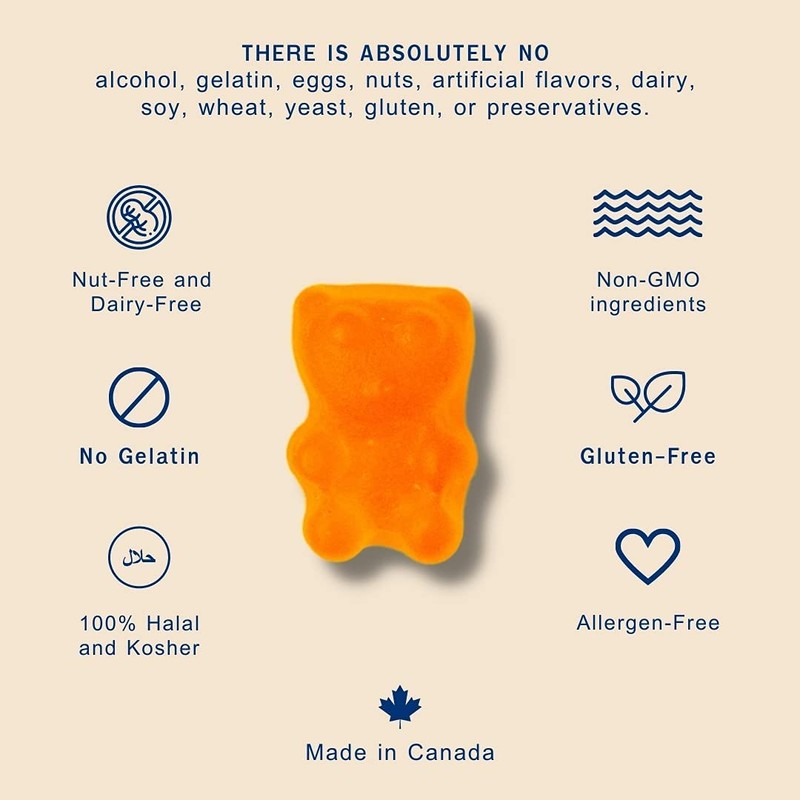 • THESE MADE IN CANADA VITAMINS are Dairy-Free, Nut-Free, Gluten-Free, Allergen-Free and all ingredients are Non-GMO. 100% Halal and Kosher.