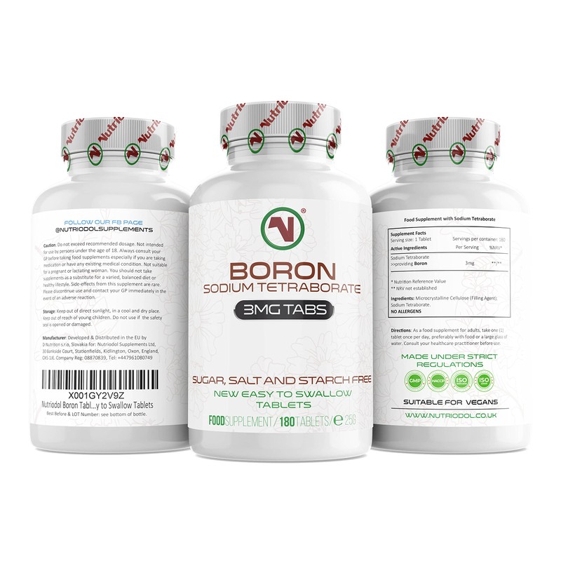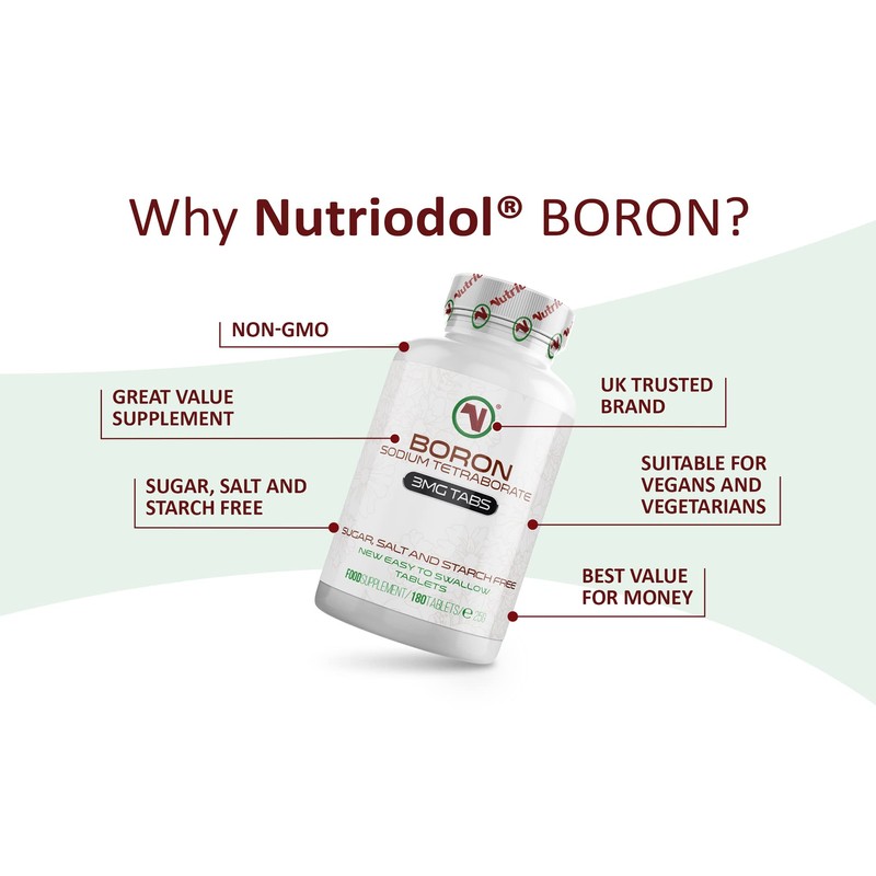 Nutriodol Boron Tablets | 3mg Per Tablet | Sodium Tetraborate | 180 Days Supply | Suitable for Vegans | Easy to Swallow Tablets
