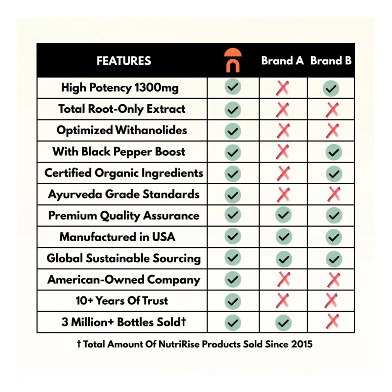 Alta potencia: 1300 mg de Ashwagandha orgánica por porción