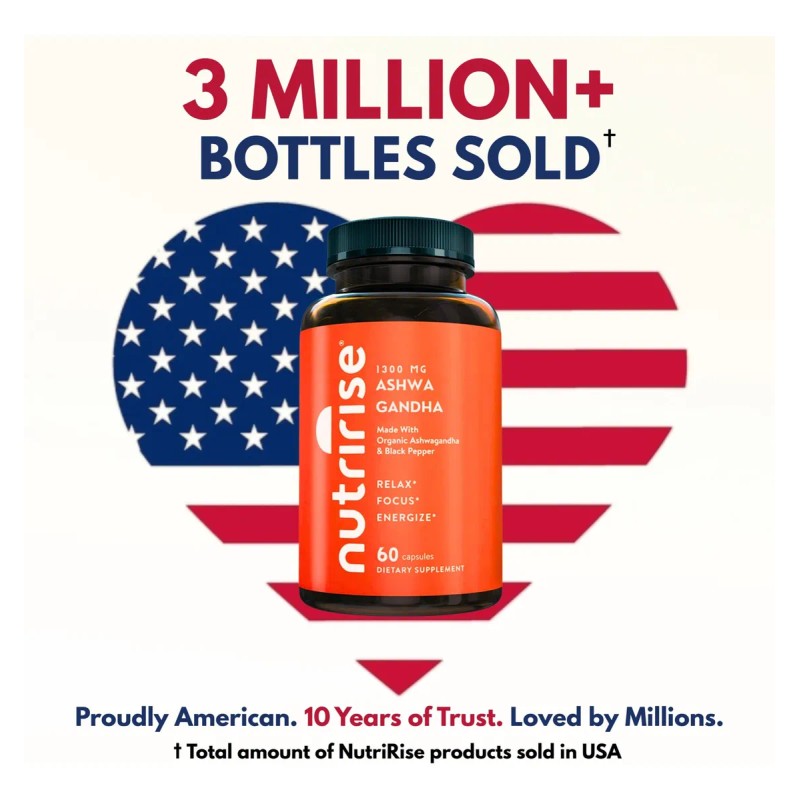 🌱 NutriRise Ashwagandha Orgánica 1300 mg – Cápsulas Veganas | Suplemento Natural para Estrés, Energía, Sueño y Enfoque Mental 🛡️🌙🧠
