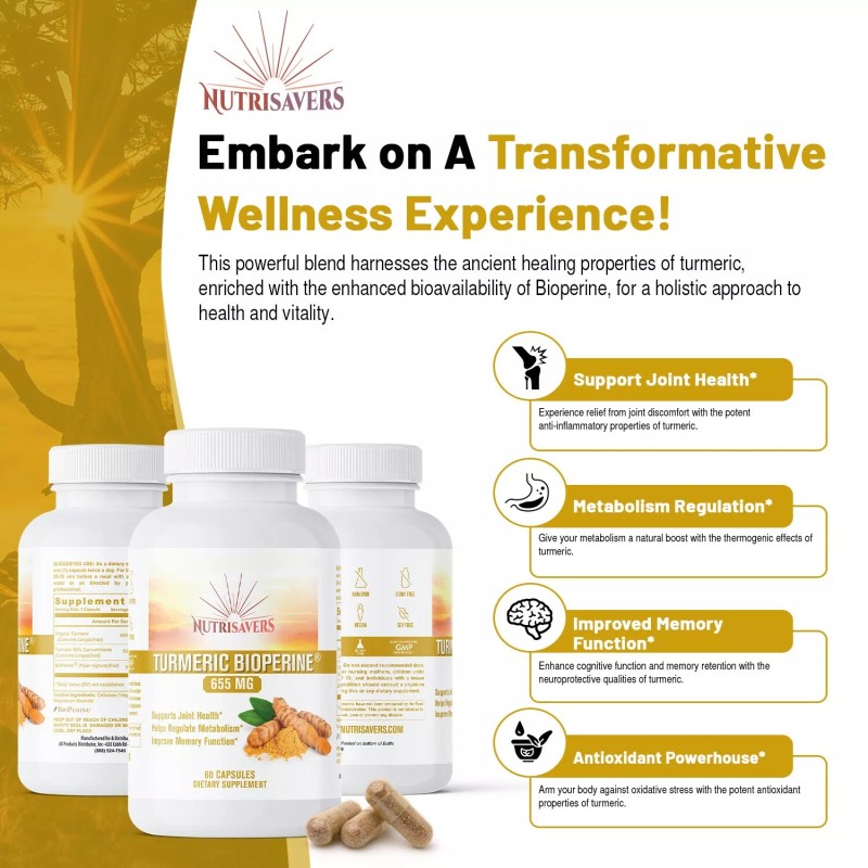 NutriSaver Turmeric w/ BioPerine - 650mg Immune Support Blend Ultimate Defense & Vitality