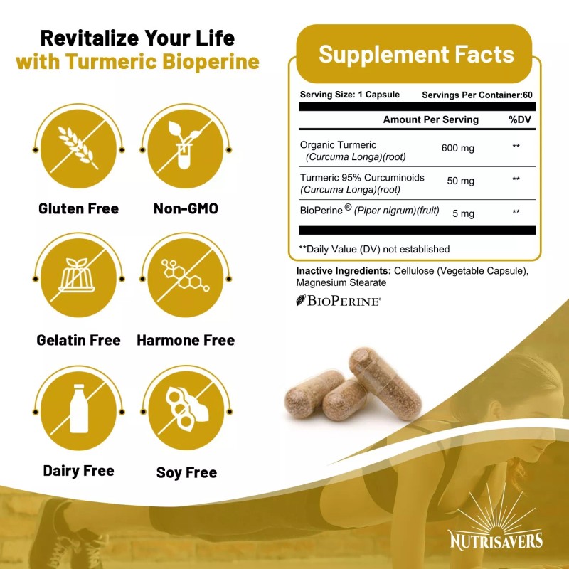 Holistic Wellness: From promoting digestive health to supporting a balanced mood, our Turmeric with BioPerine capsules offer a holistic approach to well-being, helping you thrive inside and out.