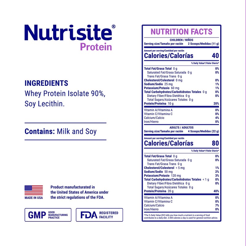 - NUTRISITE PROTEIN - Nutrisite Protein is a specialized modular powder formula designed for the nutritional management of adults and kids with moderate to severe protein malnutrition, cachexia, sarcopenia, pre and post-surgical, burns, and critical states. This food for special medical purposes is formulated with high-quality whey protein isolate, providing 90% pure protein of high biological value for optimal protein intake