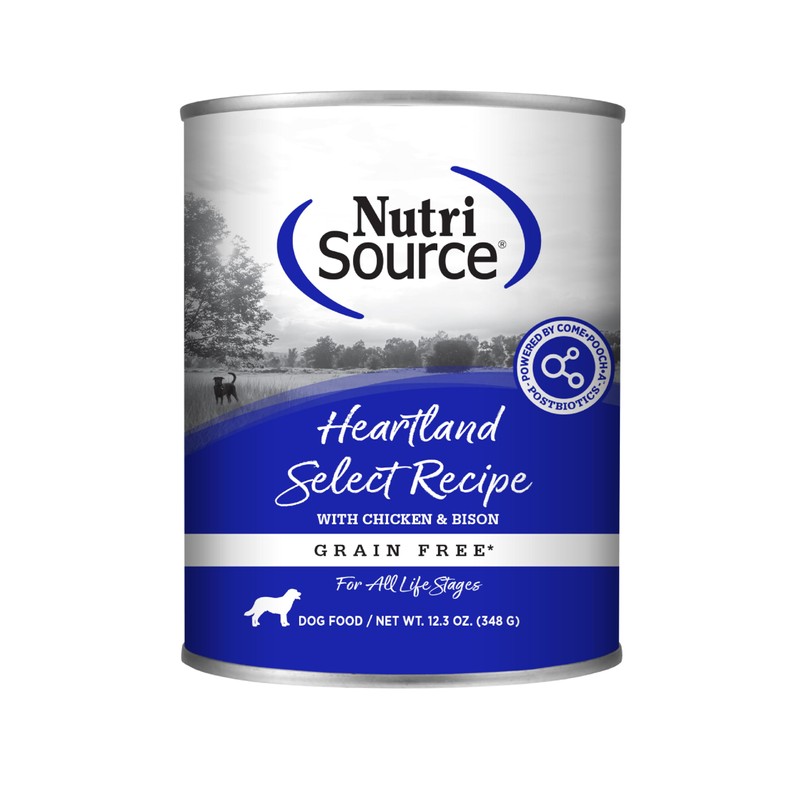 - PREMIUM INGREDIENTS- NutriSource canned dog foods always feature real meat as the #1 ingredient. Our Grain Free Heartland Select recipe is a protein heavy, low carbohydrate diet suitable for all dogs