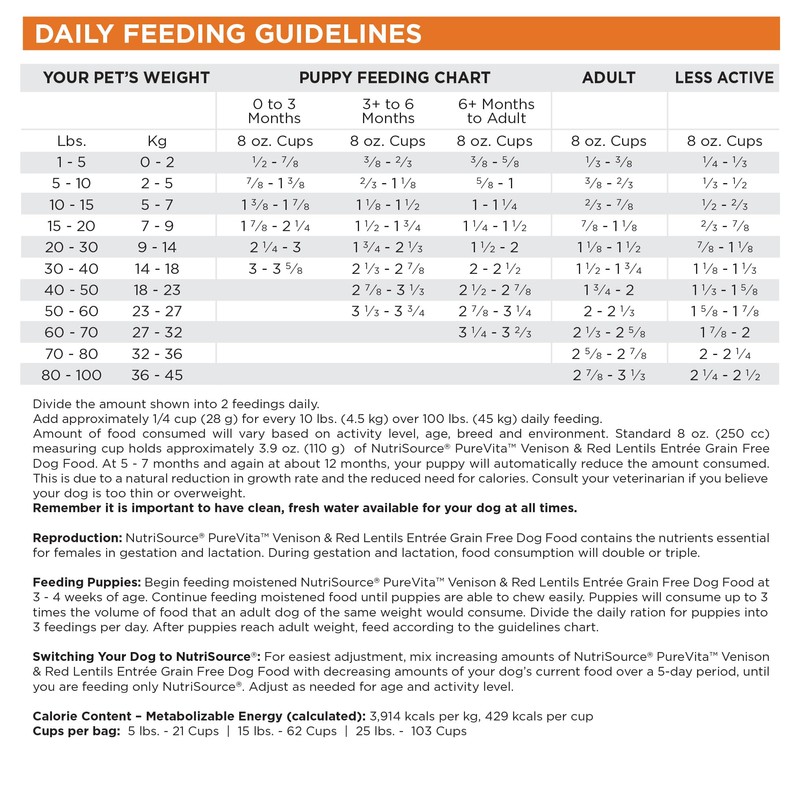 - CONTAINS: (1) 12LB Bag of NutriSource Pure Vita Venison and Red Lentils Dry Dog Food