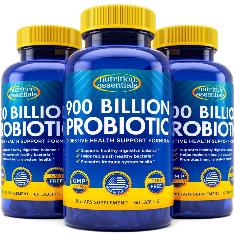 Nutrition Essentials Probiotics for Women and Men - with Natural Lactase Enzyme & Prebiotic Fiber for Digestive Health - 80%+ Stronger Supplement for Gut Health Support - Vegan Raw Probiotic Formula, 3 Count of 60 Tablets