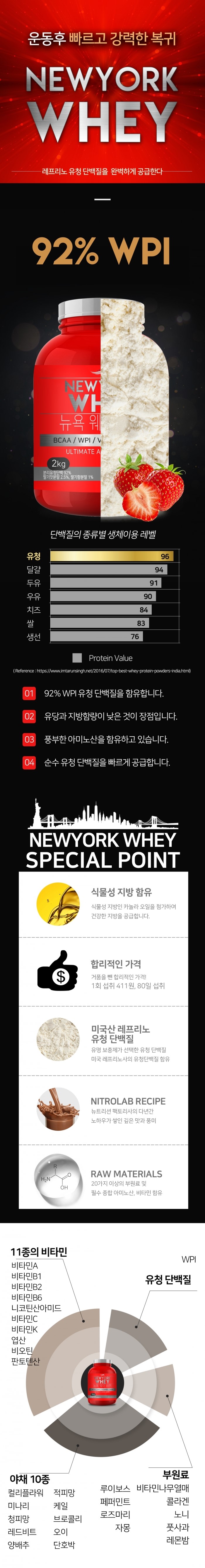 뉴트리션팩토리 뉴욕웨이 WPI 유당제로 딸기맛 2kg