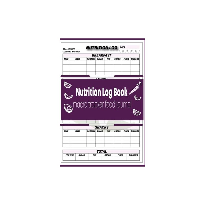 Nutrition Log Book & Macro Tracker Food Journal: Daily Counting Foods Diary Log & Tracking of Meals, Carbs, Calorie, Fat, Protein, Sugar, Sodium & Fiber -Carb and Calorie Counter Book
