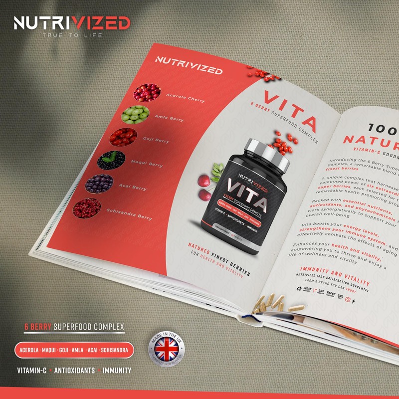 - Powerful 6 Berry Complex: Nutrivized Vita combines Acerola Cherry, Maqui Berry, Acai Berry, Amla Berry, Goji Berry, and Schisandra to provide a potent blend of nutrients and antioxidants for overall well-being.