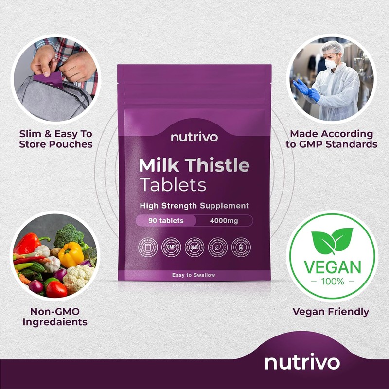 Nutrivo Milk Thistle Tablets 4000mg – High-Strength Herbal Supplement – 90 Tablets (3-Month Supply) – Vegan-Friendly, UK Made, and an Alternative to Capsules, Drops, and Tinctures
