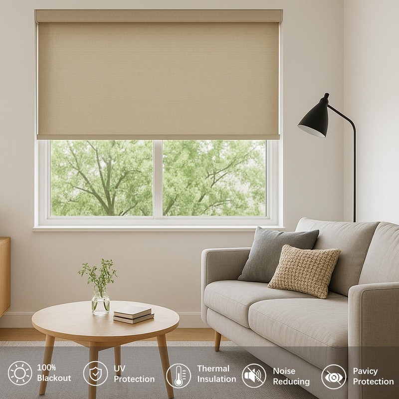 NUTRO CHILL Blackout Window Blinds Cordless, Spring System Window Shades with UV Protection Thermal Insulated Linen Fabric, Roller Blinds for Home Office(35''x72'', Beige)